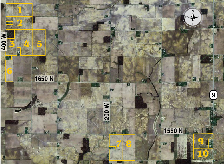 Property Location: Tracts 1-6 are located 11 miles NE of Elwood, Indiana. Tracts 7-10 are located 5.5 miles NW of Alexandria