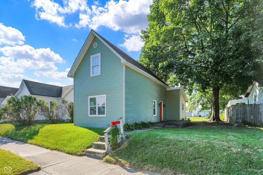 Welcome to this charming 3-bedroom, 2-bath home that perfectly blends character, space, and modern functionality. Nestled on a quiet street in Elwood, this beautifully maintained property offers inviting curb appeal with its classic exterior, mature shade tree, and welcoming front entry. Step inside to a spacious living room that sets the tone for comfortable gatherings and everyday living. The thoughtfully designed floor plan features a main-level bedroom, full bath, and convenient laundry room, creating flexibility for all lifestyles. The kitchen offers plenty of room for meal prep and dining, while natural light fills the home throughout. Upstairs, you'll find a private retreat with a generously sized bedroom, oversized bathroom, and walk-in closet-perfect as a primary suite. The additional bedrooms on the main level make this home ideal for families, guests, or a home office setup. This home has been completely updated from top to bottom, offering true peace of mind. Major improvements include a new furnace and AC (2023), along with new plumbing, siding, and windows. The kitchen appliances were all replaced in 2024, ensuring both style and efficiency. Outdoors, enjoy a private yard with space for entertaining, gardening, or simply relaxing under the shade of mature trees. With updates that blend modern comfort with timeless charm, this home is truly move-in ready. Whether you're a first-time buyer, looking to upsize, or searching for a cozy retreat, this Elwood gem offers incredible value and endless possibilities.