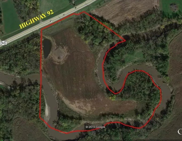 23.72 Acre m/l building site just off Interstate 35 in Madison County. Located just west of Bevington along Highway 92, this property offers just about everything you could want in a building site. The timber lined Middle River snakes along the south and east boarder of the property offering plenty of wildlife. 14 tillable acres m/l carry a weighted average CSR of 55.3, these acres have been planted to Native Grass and Wildflowers including Big Bluestem, Indian Grass, Black-eyed Susan, Sunflowers, and Purple Prairie Clover to name a few, which offers great bedding and nesting areas for deer, turkey, and upland game birds. A building pad has been prepared overlooking the pond and offers great views in all directions. Please contact listing agent for the Geotechnical Engineering Report including Soil Boring results and building recommendations. The property has quick access to Interstate 35 and is a convenient 20 minute commute to West Des Moines.