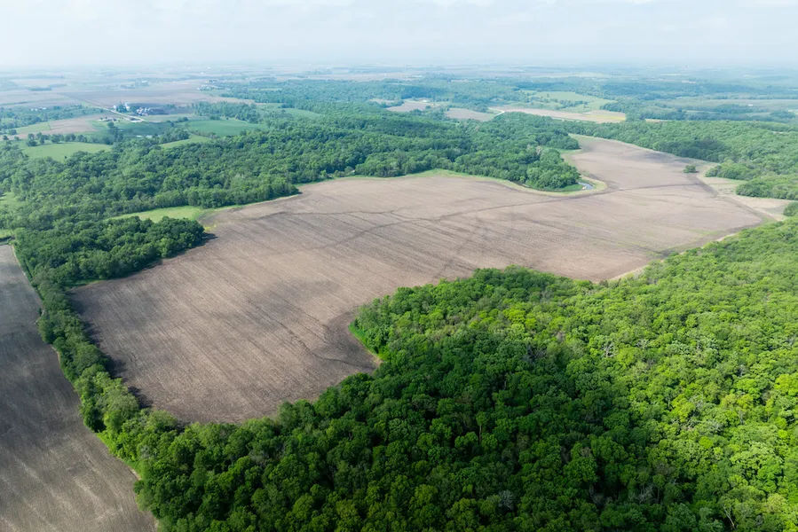 This extraordinary, mile-wide Hogback Farm is just under thirty minutes from Des Moines and offers high-quality farmland, building sites, and exceptional trophy deer hunting. Hogback is located one mile west of Highway 169, which connects Adel and Winterset and is five miles from the private runway at Winterset Municipal Airport. West Des Moines is only 23 minutes away, with downtown Des Moines accessible in under 35 minutes.The farm features mature hardwood timber, rich black tillable soils, prairie grasses, and a mile of frontage along the North River. The massive central field encompasses approximately 143 acres of high-quality, 80 CSR2 tillable land. Surrounding it are tall native grasses, part of the income-producing CRP program, which aids in soil and water conservation.This farm is ideal for managing and hunting mature whitetails, with south-facing ridges providing perfect bedding...
