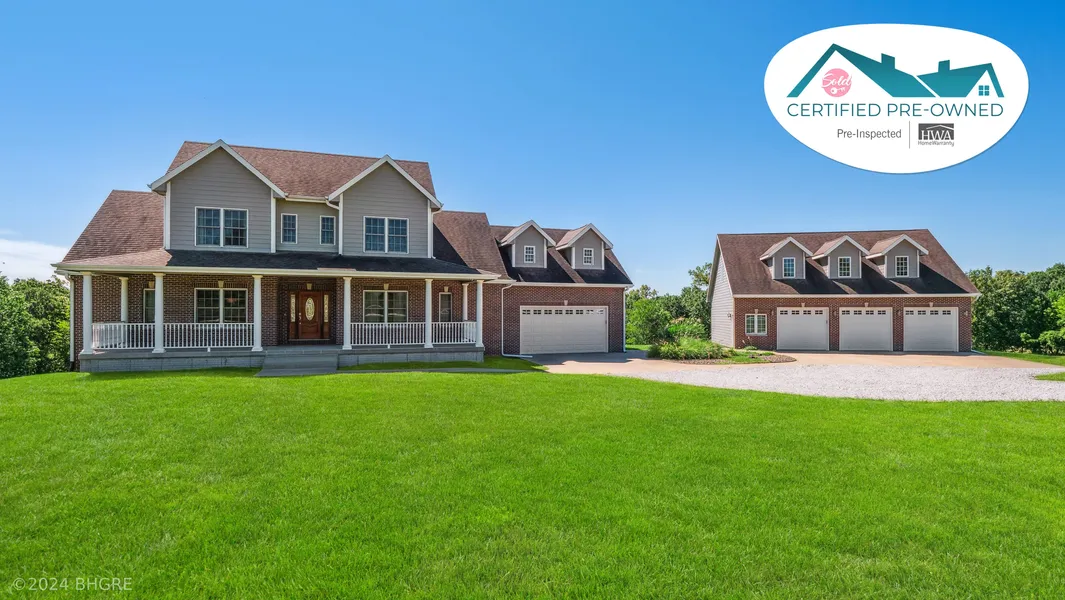 Welcome to your dream acreage in beautiful St. Charles! This stunning home offers the perfect combination of luxury, functionality, & breathtaking views. With 4 spacious BRs & a large outbuilding w/ a loft, this property has everything you need & more. As you enter the main floor, you'll be greeted by 9-foot ceilings that create an open & airy atmosphere. The main floor primary suite is a true oasis w/ walkout doors to the expansive deck, perfect for enjoying morning coffee or evening sunsets. The en-suite BA has a dual vanity, jacuzzi tub, & a giant closet w/ plenty of storage space. The kitchen is any chef's dream come true w/ all stainless steel appliances including a gas range, island for extra prep space, & an eat-in area large enough for the whole family to gather around. 2 additional upstairs BRs also feature walk-in closets & share a spacious BA. But that's not all–head down to the walkout basement where you'll find your own private getaway. Sip cocktails at your very own bar or relax in the additional large BR w/ its own huge BA. And don't forget about the 3-car detached garage – perfect for storing all your toys & tackling any DIY projects–plus an added lofted area for even more storage options. Step outside onto your beautiful deck overlooking 6 ac of stunning Iowa countryside. Perfect for hosting summer BBQs or simply taking in nature's beauty. Certified Pre-Owned Home - this home has been pre-inspected and comes with a 13 Mo HWA Platinum Home Warranty included.