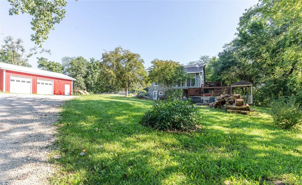 3.2-acre acreage offers 2,000+SF of finished living space surrounded by mature timber. Both beauty and privacy, especially stunning in the fall. Less than 2 miles from I-35, quick access to Des Moines, Indianola, Winterset, as well as a nearby bike path into Des Moines. Martensdale St. Mary's schools with Madison County rural zoning so you'll benefit from lower taxes. 4 bedrooms (one is non-conforming) in total, one on each level with the 4th in the walk-out lower level. Inside, gorgeous wood beams and hardwood floors. Main level has an open floor plan with a spacious family room and wood-burning fireplace, dining area, open eat-in kitchen that has been totally remodeled, open and bright. Also on the main level is a small room, perfect for office or baby's room. a beautifully remodeled bath suite with tile, dual showers, and a soaking tub. Spiral staircase leads to the upper-level loft, with an additional bedroom, play area/office, and 3/4 bath. Three-season sunroom addition off the living room to a multi-level deck, complete with gazebo and fire pit. Walk-out LL with some square footage not reflected on county records but includes another 4th (non conforming bc of egress size) bedroom, built-in bookcases, half bath, and a large mudroom. Plenty of privacy while still very convenient! UPDATES: Entire septic system (2023), water heater (2024), remodeled kitchen (2023), 24x32 detached oversized two-stall garage (2020), roof and exterior paint (2019), and sunroom addition.