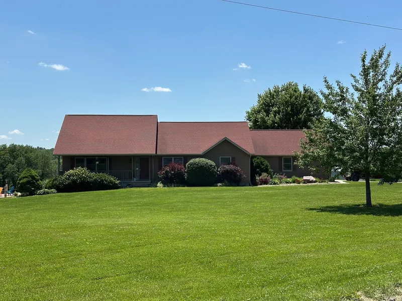Rural Madison County Acreage! Open concept Ranch with a little more than 1800 square feet upstairs with a finished basement. Upstairs consists of large master bedroom with tray ceiling and his and her closets. Primary bedroom is huge and has its own bathroom with jetted tub, walk in shower and built in make up counter, toilet has an individual door for that added privacy. Large bedroom and bathroom with large linen closet just outside the kitchen with three sided gas fireplace and lots of room and counter space for that couple who loves to cook. Dining area and kitchen island for extra seating space. Attached extra deep two car garage with a breezeway leading to the house. Breezeway is heated and aircondtioned with a dog door. Pets can stay comfortable when you're not home in their own private space or you can use area as a drop zone. Open stairway to the rustic walk out finished basement with tongue and groove ceiling. Stone bar area with full size refrigerator, pool table (included), large family room, pellet stove and high ceilings makes those family nights cozier. An additional two bedrooms and bath, laundry room and storage room with a hidden closet. Includes 30x40 heated pole barn for additional storage or for that mechanic/wood worker in the family. Hot tub for those cool nights and a 16x32 pool for those hot days. 4 acres of underground fence so your dogs have plenty of room to roam. Schedule your showing today!