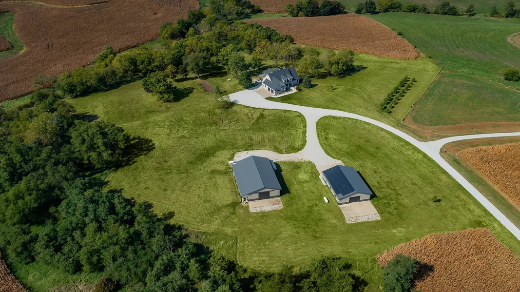 Sitting on over 32 acres and offering 5 beds, 6 baths, and over 5400 square feet... this 1.5 story home is a dream opportunity just 25 minutes from Jordan Creek Parkway! This dream acreage setting includes timber, farm ground, a creek, two large buildings (42x70' and 42x56'), and heated in-ground salt water pool with pool house! Additional features of this home include: Geothermal HVAC, fully finished walkout lower level, new roof, new windows (Pella triple pain), new siding, extensive landscaping, new interior and exterior paint, two gas fireplaces, solar located on the roof of the detached building (new in 2023), both buildings have new steel and concrete floors, Kinetico RO system and softener, high end appliances including a Viking Stove/Sub Zero Refrigerator/two dishwashers, large attached garage with epoxy floors and heater, main level laundry room and large mudroom, pool house wit...