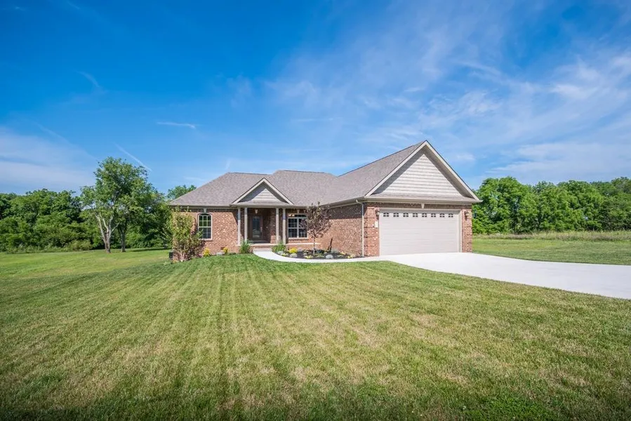 Another Five-Star Rating for this custom built G. R. Jones Construction,LLC. This home has so many amenities and wonderful features it would receive a five-star rating from anyone. Every attention to detail has been given to this all brick ranch home featuring a spacious floor plan perfect for entertaining. The home offers 3 bedrooms/2 baths, formal dining, great room with gas fireplace, a spectacular kitchen with custom cabinetry, granite countertops, stainless appliances which includes a gas range. Soaring 9' ceilings provides lots of natural light, crown molding throughout the home and a covered porch overlooking farmland. The master suite features double tray ceiling, a walk-in tile shower with glass door, a soaker tub, large walk-in closet and double bowl vanity with granite tops. The oversized garage can house a 21' fishing boat and you will still have room for an automobile and mower. Come take a look you won't be disappointed.
