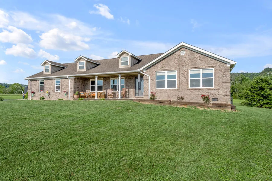 The elegant ranch home features a four-car garage that complements its charming exterior. Inside, spacious, light-filled rooms with high-end finishes and thoughtful details create a welcoming atmosphere. Expansive windows frame breathtaking views of the Pinnacles of Berea and Knob Hill, allowing you to enjoy the surrounding mountains from nearly every angle.