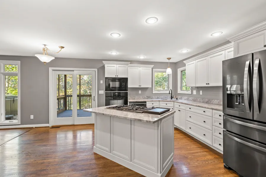 Welcome to 312 Avawam Drive in the gated community of Boones Trace! This newly updated home features 3 bedrooms (oversized primary room, and a jack and jill bedrooms) plus a bonus room overlooking the library, offering versatile space for work or play. The Kitchen has been refreshed with painted cabinets,new hardware and marble countertops, creating a bright and inviting atmosphere. Fresh paint in the front room, and on the stairs as well as new carpet in the bedrooms gives the home a crisp, move-in ready feel!! The finished walkout basement includes a full kitchen and bathroom, making it perfect for guests, entertaining or extended family! Outside enjoy a private wooded backyard with a covered deck off the kitchen that connects to an open deck with a hot tub-ideal for relaxing and taking in the natural surroundings. Boones Trace offers amenities including a pool, pickleball and tennis courts and a playground. With plenty of room inside and out, this home is ready for you!!