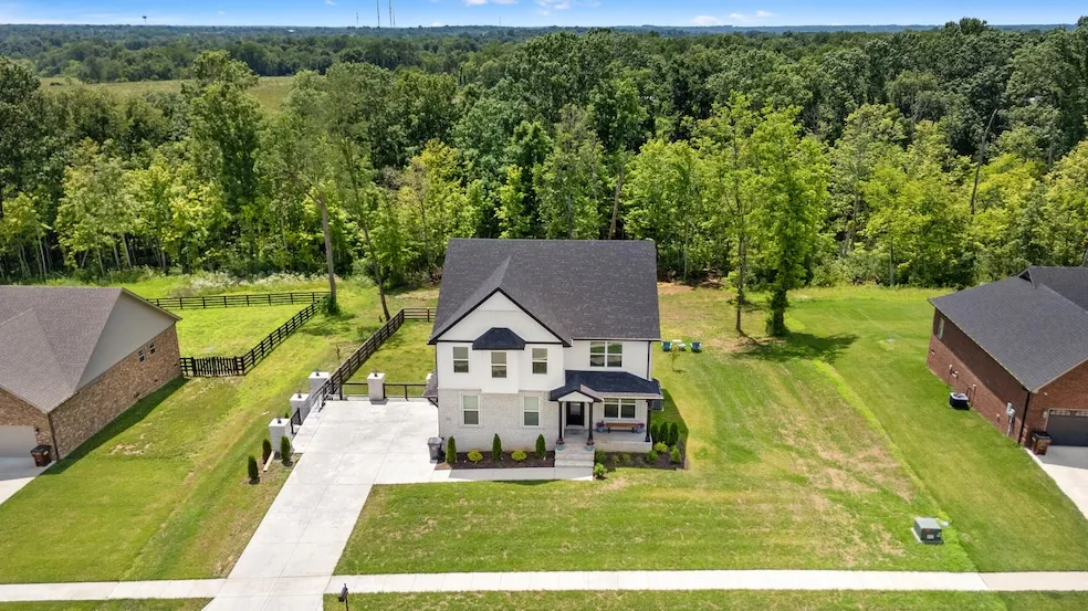 Nestled on a picturesque 1-acre lot in North Richmond, this stunning 5BR/3.5BA home showcases custom craftsmanship and upscale finishes throughout. From the moment you step inside, the attention to detail is unmistakable from the elegant coffered ceilings in the great room to the custom built-in shelving surrounding the stone gas-log fireplace. At the heart of the home, the spacious kitchen features a breakfast bar, charming dining nook, tile backsplash, pantry, stainless steel appliances, and rich granite countertops. A formal dining room provides an inviting setting for entertaining or hosting family gatherings. Upstairs, the luxurious primary suite offers a serene retreat with a spa-inspired bathroom complete with a freestanding tub, oversized tiled shower, and dual vanities. Three additional generously sized bedrooms offer plenty of space for family or guests. Step outside to a covered back deck with its own fireplace perfect for relaxing evenings while enjoying tranquil views of the fenced backyard and tree-lined horizon. The finished basement expands the living space with a large family room, full bathroom, additional bedrooms, and a versatile bonus room ideal for a gym, office, or playroom. Completing this exceptional home is an oversized two-car garage.
