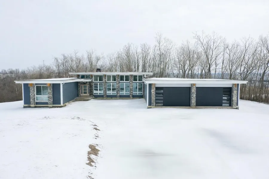 As soon as you drive up to the home, you immediately notice the privacy, setting, and architectural presence that make this property truly one of a kind. Located on 10.79 acres just five minutes from everything Richmond, KY has to offer, including quick access to I 75, this custom built mid century modern home offers a rare combination of acreage, location, and design seldom found in the Richmond market. Built in 2024, the home sits on a beautiful mix of open and wooded land, providing peaceful seclusion while remaining incredibly convenient to shopping, dining, schools, and interstate access. From the moment you enter, a warm and welcoming foyer leads you into expansive living spaces designed for both everyday living and entertaining. The heart of the home features an open concept living, dining, and kitchen area with massive windows spanning the entire back of the home, filling the spa...
