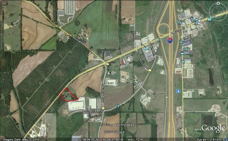 COMMERCIAL- House and 4.6 acres zoned commercial C-5 on Hwy 22 only one mile west of I-55 and the new Walmart and only 1 mile north of the new River Oaks Hospital inside Canton City Limits. This lot has approximately 450 feet of Hwy 22 frontage, the east line is 627 feet deep and the west line is 348 feet deep. Utilities available are water, phone, and cable. A gas line is run across Hwy 22 and city sewer is about 300 yards from this lot. The house is approximately 3,000 sq. ft. with very large rooms but would take alot of repair. Asking price is $250,000 ($1.25 per square foot)