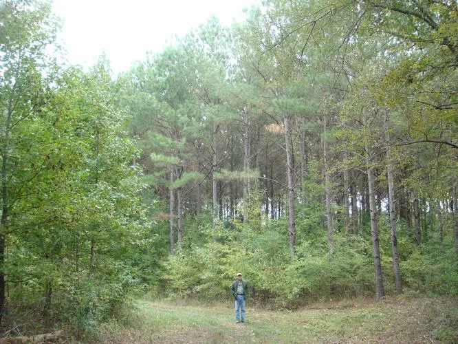 Hardwood timber plus well managed 15 and 22 year old plantation pine, county road frontage, utilities available, road systems and food plots through-out, excellent deer and turkey habitat