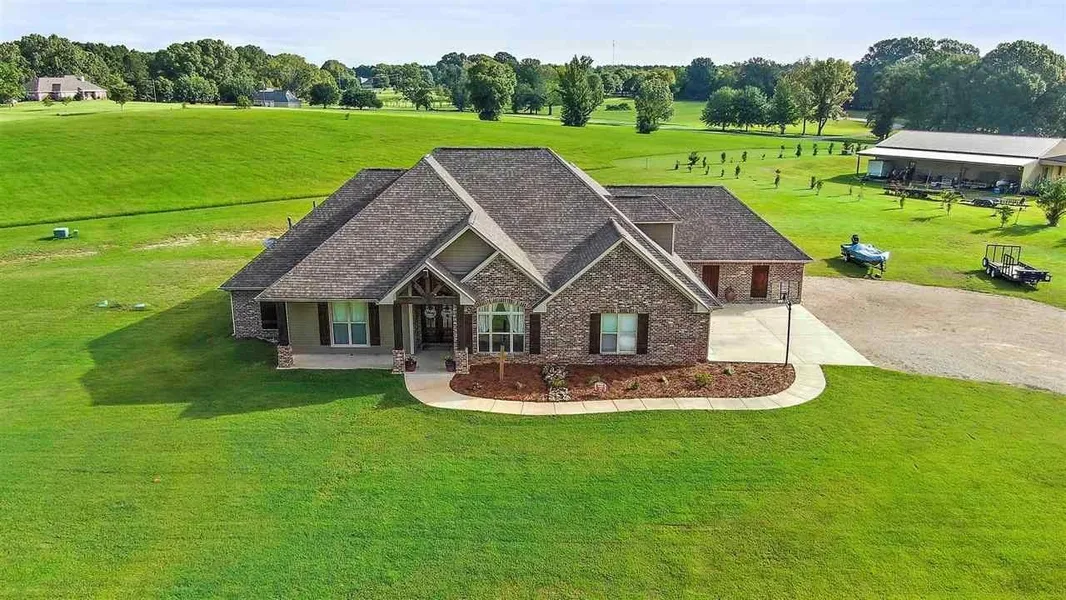 Looking for a place to stretch out a bit and still have all of the modern conveniences of living close to town?? Look no further than the Heartland of Flora! This nearly 3,300 square foot, 5 bedroom/4.5 bath home is situated on 5 acres that includes part ownership of a well-maintained pond. Built in 2017, this home is practically new and features the latest in modern style and layout. The split floorplan was custom designed and well thought-out in order to provide the best use of space and functionality. The home features beautifully stained concrete floors throughout that not only accentuate the overall design but also allow for easy maintenance. The spacious living room boast high ceilings with recessed lighting and tongue and groove wood, as well as a floor-to-ceiling brick hearth with built-ins on each side. Transitioning from the living room to the large kitchen is a stunning exposed brick cased opening. In the kitchen there are all stainless steel appliances, a large double sink, a generous walk-in pantry, and plenty of cabinets and drawers for storage. All of this wrapped in gorgeous concrete counters! The master bedroom is located down the hall from the kitchen and is large enough to accommodate a sizeable bedroom suite and then some! The ensuite bathroom features a double vanity with lots a storage, a large garden tub, a huge separate tile shower with a bench, and two walk-in closets with built-in storage - one that has a space built to fit a large gun safe. Down the hall from the master is a large utility/laundry room with sink, hanging rack, and a large counter. Up the stairs is the 5th bedroom that features a private bath. Back down and across the home are 3 bedrooms accessed from a hall off of the living room. All 3 bedrooms were built to accommodate a king size bed and have very nice closet space. The bedroom at the end of the hall has a very nice private bath. Out back there is a very spacious covered patio. This home also features two 2-car garages, perfect for storage of vehicles, toys, and equipment or use as a shop! If you're ready to have your piece of the pie and need space to play, this is it! See this one today before its gone, gone, gone!