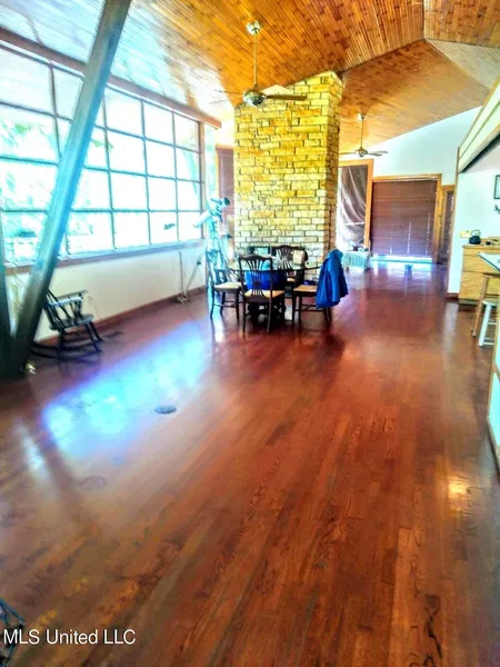 OWNER FINANCING AVAILABLE SUBSTANTIAL DOWN PAYMENT REQUIRED, Below appraised value, Highland Myst is on the market for the very first time. Influenced by Frank Lloyd Wright with a Japanese flair, Highland Myst sits safely nestled in the hills of Madison County and is located in the gated community of The Highlands on 7.24 acres of rolling hills with a pond. The design was created by award winning architect Thomas ''Buddy'' Faulkner and four years to design and execute. This unique structure contains approximately $100,000 of custom glass and an edge water cypress cathedral ceiling stretching the length of the home. Built for entertaining, this home has a 3,000 sq foot free form deck surrounded by ancient oaks overlooking the pond and a 2400 sq. foot steel building, fully operational shop. Though built as a two bedroom, there is plenty of room to expand, per HOA. It has a Flora address an...