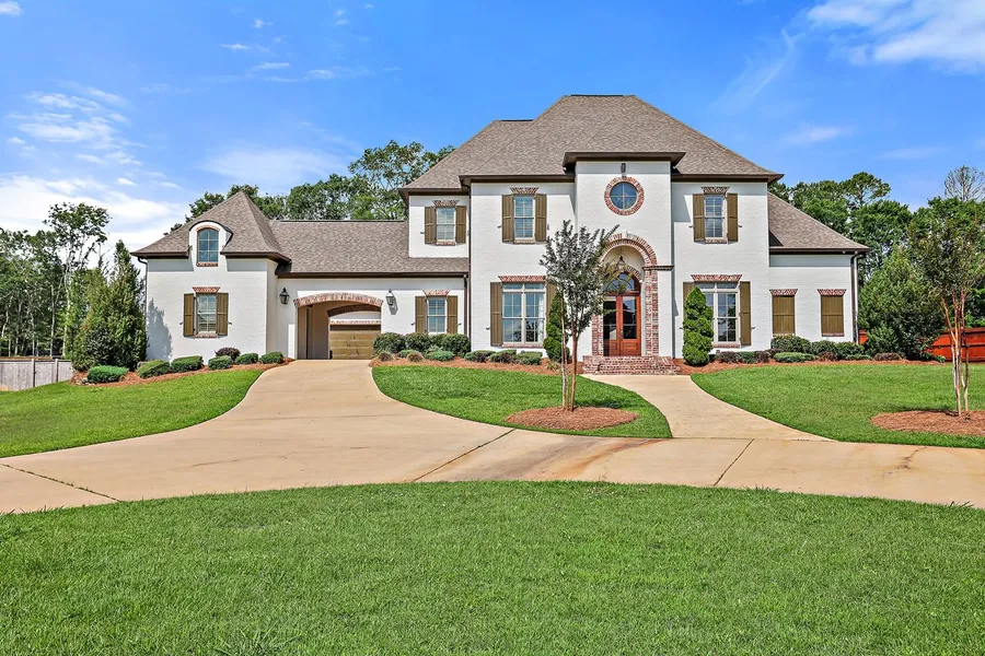 Welcome to a home with all the amenities a family would love! Ironwood Plantation is a gated community of luxury homes in Madison. Residents have access to a clubhouse for special events, and two fully stocked fishing lakes, enhancing living standards ensuring residents' enjoyment of an exceptional quality of living. Beyond the picturesque facade, portico, and meticulous manicured front yard with a circular driveway, you enter a breathtaking foyer with a spiral staircase. This custom-built home has an office, formal dining room, formal living room, wet bar area, keeping room, guest en suite, game room, media room, three-car garage, storm shelter, oversize primary suite, jack-and-jill bathroom, an additional bedroom en suite, covered patio, pool with pool house that sits on approximately one acre. This home has Thermador luxury appliances, wood ceilings, large exotic granite island and co...