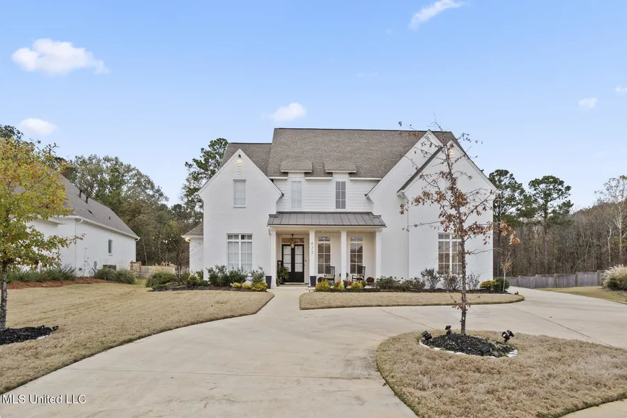 Location... lifestyle... luxury - welcome home to 423 W Oak Circle in the heart of Madison. Perfectly positioned in the highly sought-after Eastwood Subdivision, this stunning farmhouse-style residence blends extraordinary craftsmanship with thoughtful design, all just minutes from premier shopping, dining, and top-rated Madison schools. From the moment you approach the grand double doors, you'll sense the quality and attention to detail. Inside, rich hardwood floors, custom finishes, and designer lighting create a refined yet inviting atmosphere. A formal foyer anchors the entrance, flanked by a private office and an elegant formal dining room. At the center of the home is the showstopping Great Room, featuring a soaring 22-foot ceiling, dramatic double-sided fireplace, and a gorgeous modern iron staircase that serves as a true architectural focal point. French doors line the rear of the home and lead to your unforgettable outdoor living space-a deep covered porch complete with its own brick fireplace, full outdoor kitchen, and grilling station, ideal for year-round entertaining. The chef's kitchen is a dream come true, offering white quartz counters, subway tile backsplash, a large center island with farmhouse sink, six-burner gas cooktop with pot filler, double ovens, stainless steel appliances, and an expansive walk-in pantry. A cozy keeping room sits just off the kitchen, offering a relaxed gathering space. Additional conveniences include a Butler's Pantry with wine cooler and sink, plus a spacious laundry room with utility sink, cabinetry, and excellent storage. The luxurious primary suite provides a peaceful retreat with soaring ceilings and spa-worthy finishes. The primary bath showcases dual vanities, glamorous lighting, separate water closets, a fully tiled walk-in shower, and a freestanding soaking tub. The massive walk-in closet features custom built-ins, seasonal rods, and convenient access to the primary bath. Upstairs, three generous guest bedrooms offer flexible options. One features its own ensuite bath and could easily serve as a media room or man cave, while the other two share a well-designed Jack-and-Jill bath. Out back, the beautifully landscaped fully fenced yard opens to a serene, tree-lined backdrop-your own private oasis of peace and privacy. This Eastwood beauty offers the ultimate Madison lifestyle-luxury, convenience, and timeless design. Don't miss your chance to make 423 W Oak Circle your forever home.