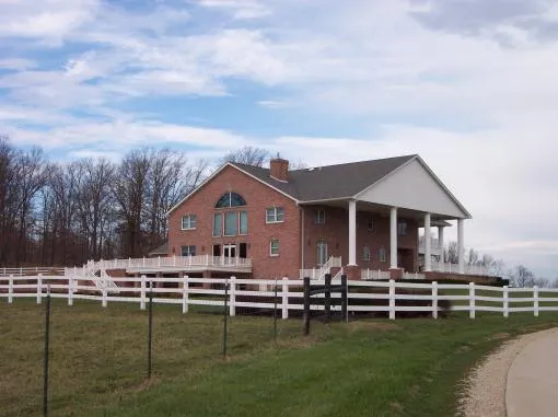 You're sure to enjoy all the amenities that are offered with this 6-BR, 6.5 BA brick beauty. This home features nearly 12,000 sq.ft. of finished space on three levels. The geothermal heat pump keeps the utilities at a min. even with zoned H&A. This home offers central vacuum, security system, remote blinds, drop down chandeliers, large rooms, beautiful oak spiral staircase, all walk-in closets, concrete patios & balcony and a top of the line kitchen for that gourmet cook. The walkout basement boasts a second kitchen, chair lift, large bar, family room, game room, BR, BA, and lots of storage area. Outside you'll find a remote entry gate, over 1/4 mile of concrete drive, lots of white vinyl fencing, cattle guards, stocked pond, 40' inground pool, underground sprinkler system, 2 barns and the farm is all fenced & cross fenced. The 40x50 barn has 2 finished apartments, 16' tall masonry fireplace, H&A & 2.5 BA. The 40x80 hay barn has a concrete floor, water, 2 16x80 lean-tos.