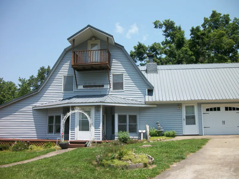 55 ACRE ESTATE, Nestled down in the valley lies this unique 5 bedroom, 3 bath, gambrel style home. Boasting some of the most unique finishes I've seen to date, from hand carved newel posts on the oak staircase, to the 3rd story balcony over looking the entrance, and the in ground pool. This is a one of a kind property. Almost a half a mile of concrete road weaves through the valley floor of this property. Leading from the county road, past the house, beyond the machine shed, and barn. Ending at the stocked lake and log cabin, where the spring fed lake feeds the year round creek that runs through the property. A diverse mixture of pasture, and mature trees makes this fully fenced 55 acre estate the perfect getaway for almost anyone. From the horse enthusiast to the avid outdoorsman, this is a must see property.