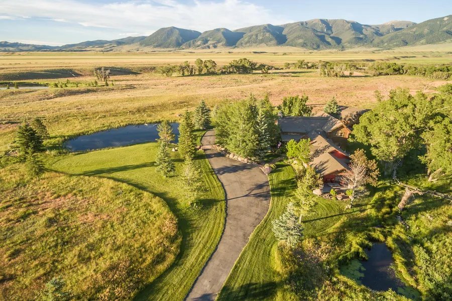 Beautiful, private, safe and secure oasis with lush landscaping, two creeks and a large stocked pond. Cooper Creek and Jack Creek Spur flow through this property, which also includes a horse pasture with loafing shed, three ponds and hot tub integrated into the landscaping. Situated on 8.4 acres in the highly desirable Jeffers area, this property borders the 2,000 acre Channels Ranch, which is in conservation easement, protecting views. While very private with abundant wildlife, this family compound is only 5 miles from Ennis. The detached guest house includes a 2-car garage, gym, art studio/workshops and 1950 grain silo. Property is offered turnkey with everything needed to provide a full complement of furnishings, art and a Dodge Ram 1500. World-class skiing at Moonlight Basin and Big Sky Resort is only 23 miles up Jack Creek Road. The Madison River, a Mecca for fly fishermen, and Ennis Lake are within walking distance. Upscale but not uptight, this is Montana living at its best.