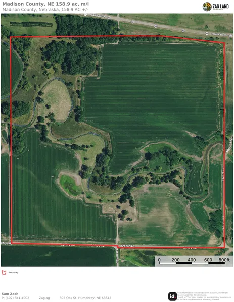 Zag Land Company is pleased to present this Madison County farm located two miles East of Madison just South of Highway 32. The farm has a combination of irrigated and non-irrigated cropland as well as pasture and recreational ground. The Union Creek flows through the center of the property providing a source of irrigation water and wildlife habitat.