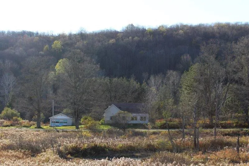FARMHOUSE LARGE ACREAGE bordering STATE FOREST ----- Acreage surrounded by State forest along both sides of Carpenter Road. This property has it all! Total of 97 acres. Both sides of the road have a gentle slope up hill leading to distant ridges. The South side of the property -- approx. 33.7 acres -- has a nice year around creek in the bottom area leading up hill into scattered pines and a hardwood ridge. This directly borders state land on the back side and along one of the sides. Across the road to the north is the 63 acres + farm house with 4 bedrooms, 1.5 bathroom, living room, large kitchen and spacious front porch. House has drilled well and working septic. In addition, there is a seperate 2 car garage off to the side. All in good, working and livable condition. This acreage consists of small year around creek behind the house leading up hill into apple thickets, pines and mixed h...