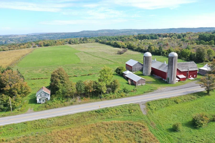 Nestled in the gently rolling hills above Cazenovia, this beautiful small farm features tillable land, pasture, timber, a small stream, multiple ag buildings, a former retail store as well as a farmhouse. The fields lie flat and offer both tillable and pasture easily accessible behind the barns. The former retail store offers multiple potential opportunities for commercial retail business, commercial kitchen, office, studio, and/or ample space for possible conversion to a year-round home. This building has a commercial-style kitchen, large open area most recently used as a living room, three 10'x10' separate rooms on the main floor, and a full bath downstairs. The walk-out basement, with utilities, a concrete double sink, concrete floors, and open areas, provides additional room for work areas, storage, or living space. This building features a radiant heating system using propane. A picturesque traditional, gambrel roofed, 2-story barn has been well maintained and most recently used for processing honey produced on the farm, provides opportunities for raising livestock, horses, storage, or additional work areas. There is an extensive solar panel system in place which provides electrical service to the ag buildings as well as the former retail building. In addition, there are multiple additional equipment and storage barns, including a historic granary building dating back to the 1700s. There is a two-story farmhouse, recently gutted in the process of a full remodel; upon completion of its current design, it could offer two bedrooms and one bath and could be a residential home for the new owner or potential rental income for the farm as well. The farmhouse includes the newly purchased stainless steel Frigidaire kitchen appliances, including a five-burner gas stove, dishwasher, microwave, as well as the kitchen cabinets and countertops. It also has a new 100 amp service entrance, a newer propane forced air furnace as well as some wiring already completed.. The ag fields are currently leased on a year-to-year basis, which could offer an option for continuing income potential from local farmers or converting to your own farm operation. There is a substantial woodlot of over 70 acres of mixed soft and hardwoods, primarily including oak and maple, offering future timber income potential. Former logging roads that can accommodate a side-by-side provide access through this diverse habitat for whitetail deer, turkey and other area wildlife and offers really nice hunting opportunities. With wild apple trees adding to the habitat, this wooded portion of the property features a rolling topography, with some more open areas ideal for food plot development, which creates attractive food, cover and travel routes for deer and turkey. Amenities are close by in Chittenango, within 1.5 miles, and Cazenovia, within 7 miles. Commuting is easy for work, shopping, additional restaurants, and entertainment, with Manlius within 5.5 miles, Fayetteville in 7, and Syracuse in only 15 miles. This property is under a Conservation Easement, which has certain building restrictions and is located in the Chittenango School District. *Subject to approval of subdivision