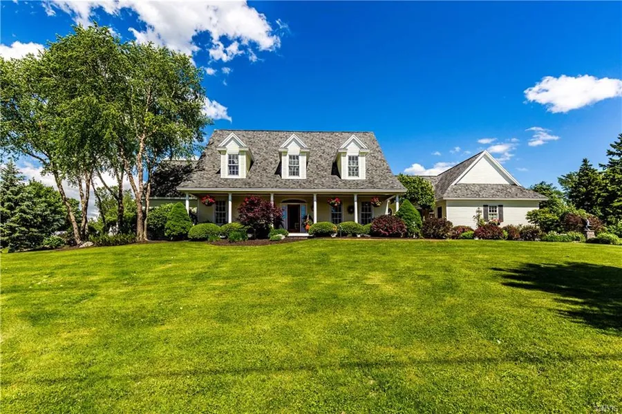 This stunning Cape Cod home is located on a 5 acre lot in a country neighborhood just outside the quaint Village of Cazenovia. From the open-concept kitchen to the large back yard,there is plenty of room for the whole family to enjoy. Entertain family and friends around the in-ground pool surrounded by paito's and decking with a massive fireplace as the center piece. The landscaping is beyond beautiful !! The eat-in-kitchen features custom cabinetry and moldings, granite counter tops, and butlers pantry. Adjoining the kitchen is a the family room w/cathedral ceilings, fireplace, gorgeous wood floors. A 1st floor master suite is tucked away in the back of the house the bath is huge w/whirlpool tub and walk-in-closet. Upstairs to the 2nd floor you'll find 3 bedrooms and 2 baths, and a bonus room now used as a hang out room for the kids.The finished lower level has a bar area and plenty of room for the pool table. One of the highlights of this home is the pool area and patios (unbelievable) you'll never want to leave home. Walk through the door and fall in love !!!!!!