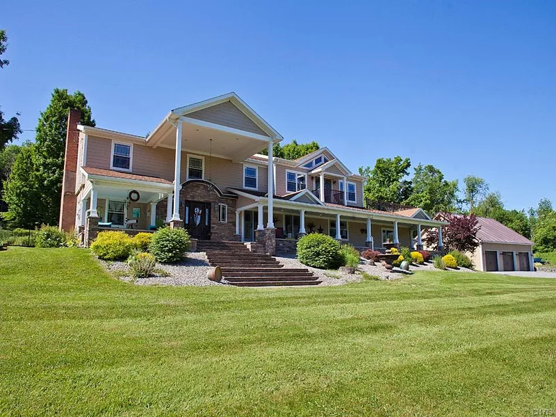 Wow! Is the only to way to describe this fabulous 6000 sq.ft home set on 12 beautiful private acres, complete with stocked swimming/fishing pond, views for miles, romantic sunsets and plenty of space inside and out for entertaining. This house has been transformed over the last three years to include a newly built three car garage w/walk up full attic space. Inside the magnificent house there is plenty of space for everyone! Gorgeous large master w/ updated bathroom, walkin closet and balcony. First floor inlaw suite or second master complete with fireplace and private deck. Inside and Outside wet bars, Fireplaces galore and Heated Concrete flooring in the Sunroom. Updated Eat In Kitchen w/ granite counters, Cali Bamboo vinyl flooring, Stainless steel appliances and new lighting. Updated Bathrooms. Outside you will find Stampcrete patios, fire pit, outside bar, partially fenced yard and ...