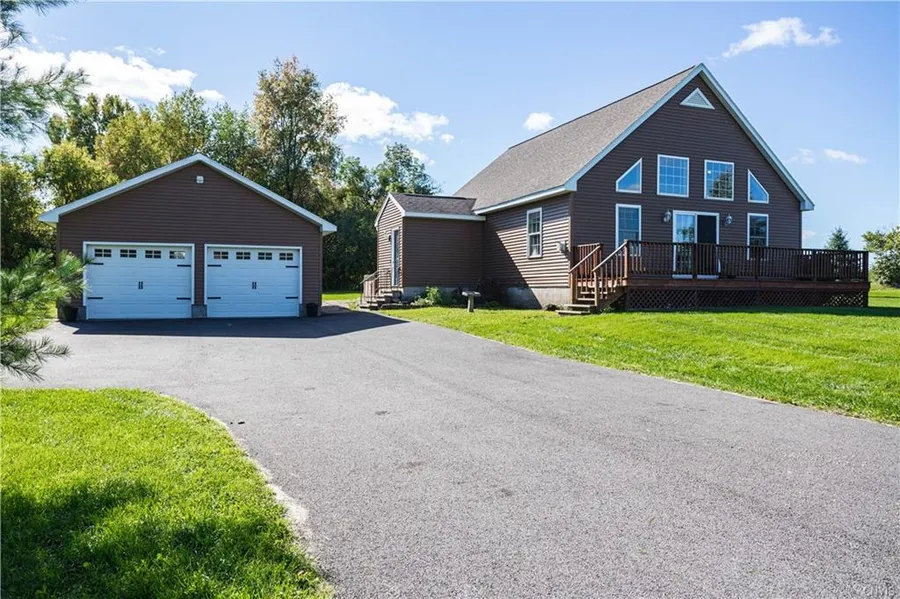 You are going to absolutely love this 3 bedroom, 2 full bath home! It sits on 1.25 beautiful, grassy acres with a detached 2 car garage and a brand new driveway. Beautiful mudroom with gigantic closet greets you when you walk in but the great room will make you fall in love! With two story ceilings, corner fireplace, and windows galore you will surely be amazed. Downstairs features 2 bedroom and a full bath, along with the kitchen that has all new appliances. Upstairs has another full bath, walk in closet, and a dreamy bedroom that opens to it's own private balcony. Sit outside and watch the sunsets from the balcony or the huge front porch. Enjoy the cozy patio on cool nights sitting in the new hot tub. Full basement could easily be finished to give you even more space. Such a serene location that is still so close to everything.