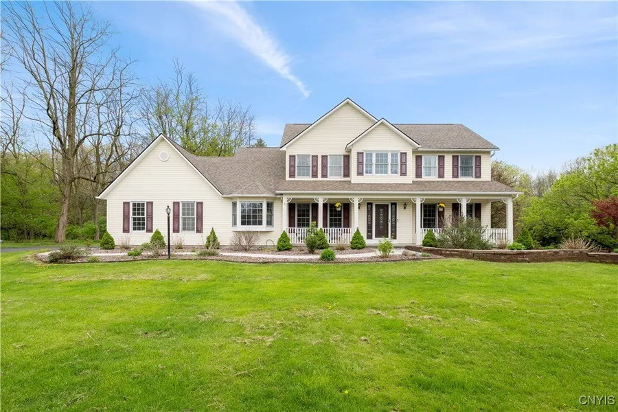 From the moment you arrive, you’ll feel the welcoming embrace of this special place—a home that offers both the warmth of country living and the elegance of upscale design. Nestled on five private, beautifully landscaped acres in the Chittenango School District, this stunning 5-bedroom, 3-bath Colonial offers the space, style, and serenity you've been searching for. Set well back from the road and surrounded by mature trees, this home is a private retreat where peace and nature abound. Step into a soaring two-story foyer and discover ceramic tile flooring that flows seamlessly throughout. Just off the entry, a bright bonus room makes the perfect home office or quiet reading space, filled with natural light. At the heart of the home is a chef-worthy kitchen that’s both practical and picture-perfect. Fully renovated, it features quartz countertops, shaker-style cabinetry, new appliances, a...
