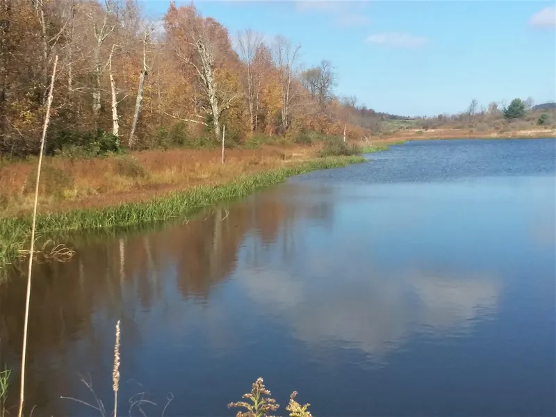 Beautiful setting next to a 2.5 acre pond, meadows and woods. Great 19 acres of hunting loaded with Deer, Turkey, Grouse and rabbits. Plus this hunting land has a beautiful pond to fish!