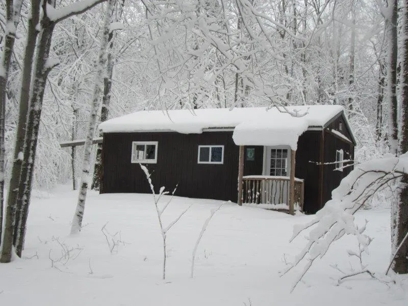 Perfect 14 x 24 hunting camp to keep the weather off between hunts and cozy up against a warm fire. The camp is built on a slab and is finished with knotty pine, laminate flooring, and cozy woodstove. Wired for generator and ready to hook to the grid as a pole is across the street. Ideal location on the property ( SW corner of land ) so it does not disturb the hunting!