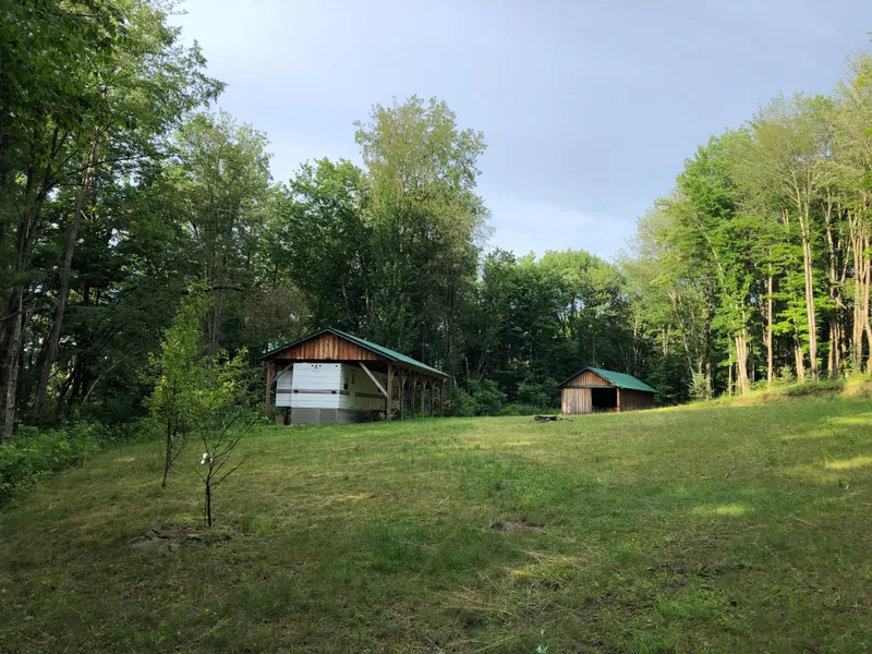 Included is a luxurious Breckinridge Park Model Camper with two crank outs, sleeping 7 people comfortably. Septic holding tank and leach line for sewage. Generator in the barn for electric or run off 12 volt batteries. Propane heater and full bathroom. A sturdy lean-to with a metal roof over the camper protects it from the elements and provides an outside covered area. Large grassy yard with a firepit and planted fruit trees makes a pleasant setting.