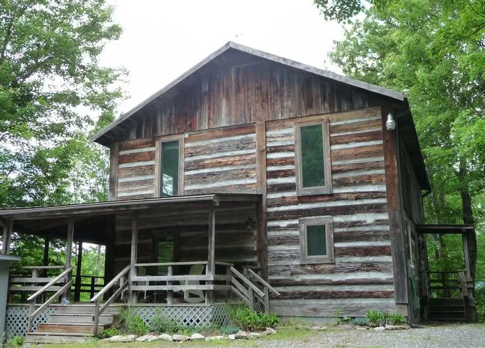 Very private setting with mountain views. 3BR/2BA log chinked home constructed with 100 + year old logs sits on wooded knoll. Kitchen with wormy chestnut custom cabinets open to great room. Wood floors and old barn wood walls. Open rustic wooden stairway leads to loft. Clawfoot tub in upper bathroom. Covered wrap around rocking chair porch. Storage buildings. Garden space and pond with picnic area. Home on 15.98 acres available.