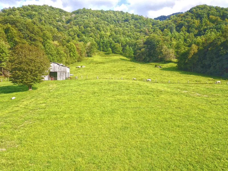 Many possibilities on this 158 +- acres with gentle rolling pastures and spectacular long range mountain views. Easy paved access. Great property for a horse farm, agricultural, homestead or estate. Beautiful woods. Springs. Barn and two As Is old houses take you back to a peaceful and simpler way of life. Come and enjoy the mountain lifestyle!