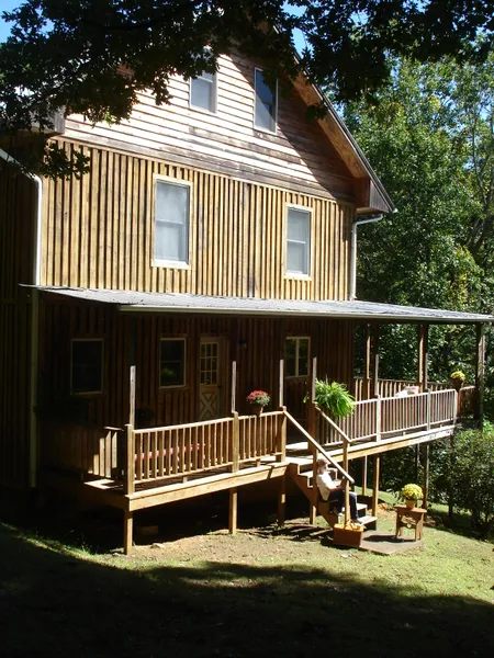 WOW! Large home with huge eat in kitchen with stone fireplace. Stone hearth and wood stove in large living room for cozy gatherings with friends and family. Hardwood floors, open stairway with balcony to second level. Large master on main, second master on upper level with 4 more bedrooms, all with walk in closets, and 2 full baths, one with claw foot tub. Tongue and groove wood throughout. Full unfinished attic with windows, full unfinished basement with 2 car garage and room for a large workshop. All on 28+ acres of privacy for hiking and enjoying nature. Would make great family home, vacation home or short term rental. Other building sites on the property for family or rentals. Country living just 30 minutes to Downtown Asheville.