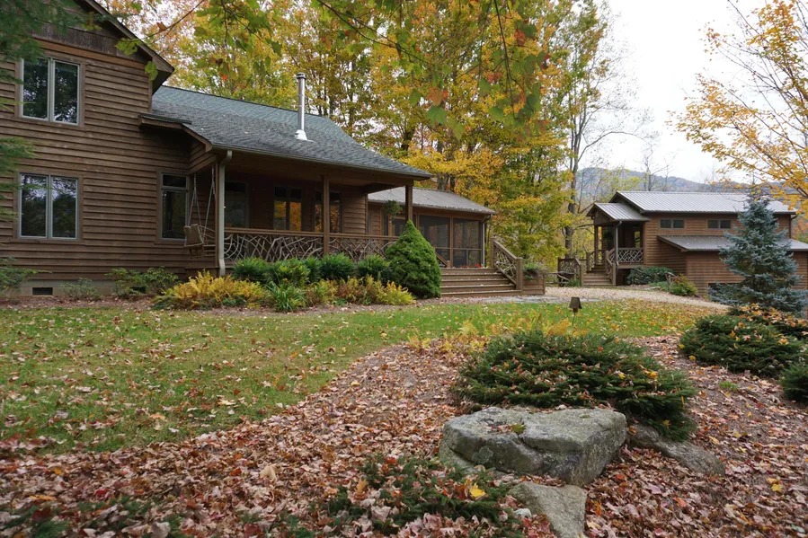 Elegant rustic style home. Private setting. Quality finishes. Rustic, reclaimed materials, poplar bark inside and out. soapstone, wood stove, Alder doors, copper sinks and tub, radiant floors, heated towel bar in master bath, granite counters and stainless steel in kitchen, Pine beams. Great 515 sq ft studio or office with bath. Could be additional living quarters. Large screen porch. finished oversize heated garage/workshop. Additional acreage available that would include creek frontage and a barn. Contact listing agents for details.