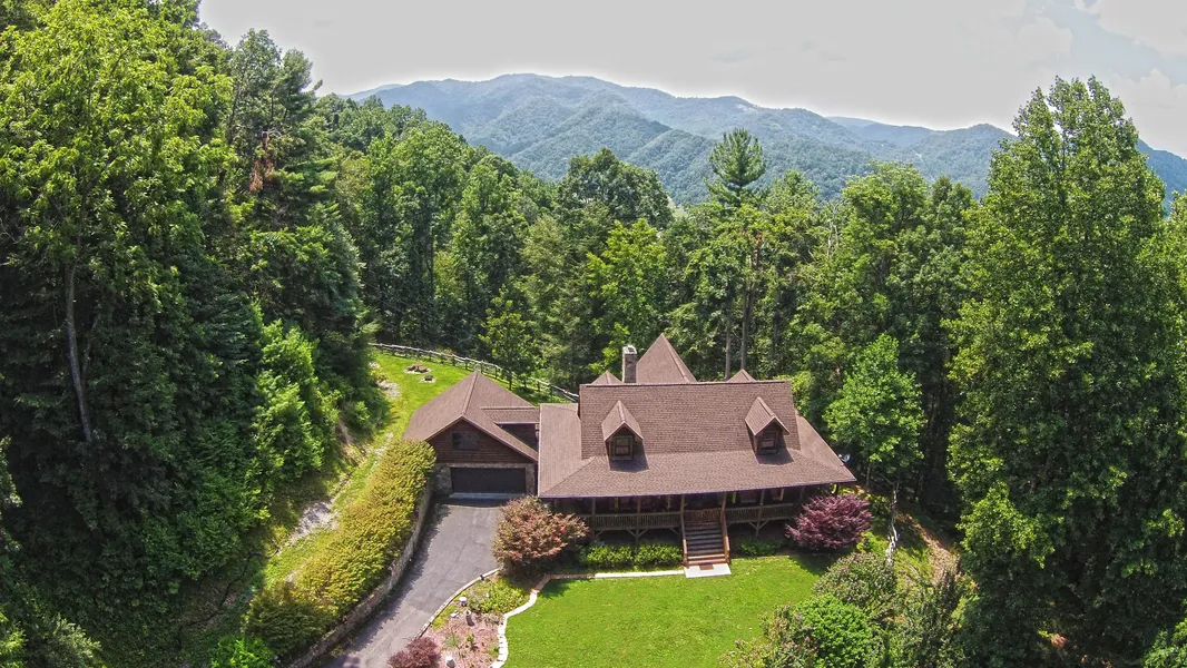 Tranquil and Private 62+ acres on pristine woodland with cascading creek. Beautiful 3BR/3.5BA log home with spacious, open floor plan, beautiful stone fireplace. Catch the mountain breezes from the large wrap around porches overlooking established gardens with multiple sitting areas. Great kitchen opens to living area and outdoor dining porch. Large sunroom. Master suite on main, 2 car detached garage. Shop, studio/rec room, Guest Cabin with hot tub.