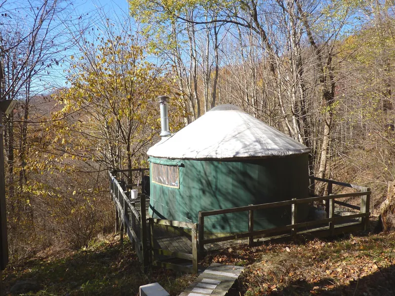 Research Parcel InformationFrom Hot Springs take Hwy. 209 south to left on West Rd. just past Liberty Church. Go to end of pavement and continue on gravel road to top of the mountain where there are 3 gates. Take center drive through yellow gate and go about 1/2 mile to property on right and left. Yurt is on right up hill.