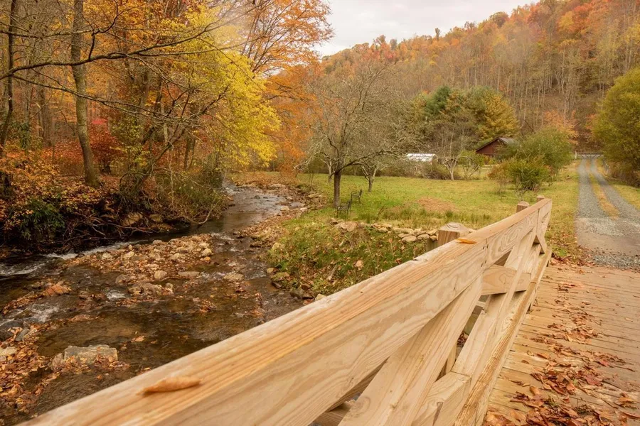 27.75+/- Acres in the sought-after Wolf Laurel neighborhood less than 10 mins from ski resort. 2 houses: a 4-bedroom and a 2-bedroom. The 4-bedroom 3-bathroom, constructed 2001, has a huge finished basement. Kitchen features expansive kitchen granite countertops. Master bathroom features luxury shower, enormous tub, two sinks with granite countertops, huge walk-in closet. The 2-bedroom 2-bathroom, constructed in 2005, actually has 3 bedrooms, but a 2-bedroom septic tank. It features a handicap-accessible bathroom and an exterior wheelchair ramp. Both houses are set very far back from the road for maximum privacy. The owners have made significant improvements, including many master-craftsman woodworking details: (1) Large stylish barn with a pen and built-in hay feeder (2) Large stylish garage, built to match the barn (3) Bridge over the creek constructed in 2019 by Bryant Construction, who has built bridges for the Biltmore Estate. This bridge is composed of steel girders laid across poured-concrete retaining walls and is adorned with elegant custom woodworking. (3) Two spacious stylish wooden chicken coops, with fenced-in chicken runs. The property features around 1,000 feet of creek front on Puncheon Creek, which is stocked with trout by the state. The fenced-in pasture features the barn and two storage sheds. One shed is divided into a grain/hay storage area and a cozy living space with a hay feeder for livestock. There are around 22 acres of woods (mature timber) on the property. The trails have been cleared and maintained for logging and hiking. Trails have also been cleared along the creek. There is an apple orchard and blueberry bushes. 30 minutes from Asheville, 19 minutes from Weaverville, 14 minutes from nearest supermarket.