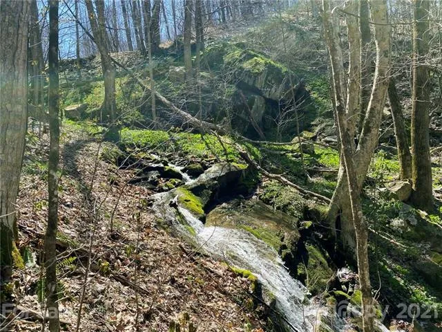Chimney stone from a long ago cabin lay stacked on this 7.5 acres of pristine natural beauty with creek and water falls! Gentle building site in this beautiful forest glen among large trees and lush native plants. Easy access on good gravel road to the building site. Underground power and phone installed. Truly a private mountain sanctuary