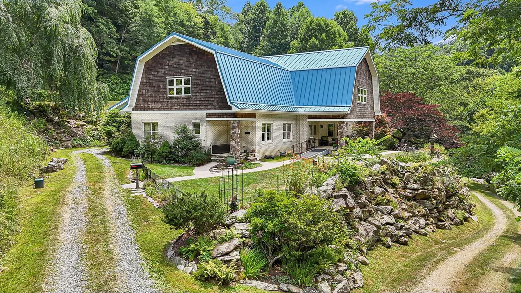 On the market for the first time! Lovingly cared for Dutch Colonial style home, large barn, pond, trails, green spaces, gardens, and a bold creek on 36+ acres. 4 bedrooms and 6.5 bathrooms. Incredible home office space. High speed internet. All bedrooms are on the main floor have an en suite bath. Separate sitting room and access to outdoor patio in primary Master suite. Radiant floor heat and central air. On the upper level there is a vast workspace/hobby room, a bonus space with a full bathroom, and a storage room. Would make an incredible studio! There is an expansive workshop downstairs as well, and a 2-car garage. Hike on your own property! Manicured trails are in place that meander alongside the creek and to the pond. The large barn features a sealed and insulated upstairs and plenty of room to store equipment on the ground level. Established gardens and mature landscaping throughout. Easy access to Max Patch, downtown Hot Springs, Waynesville, 40 minutes to Asheville!
