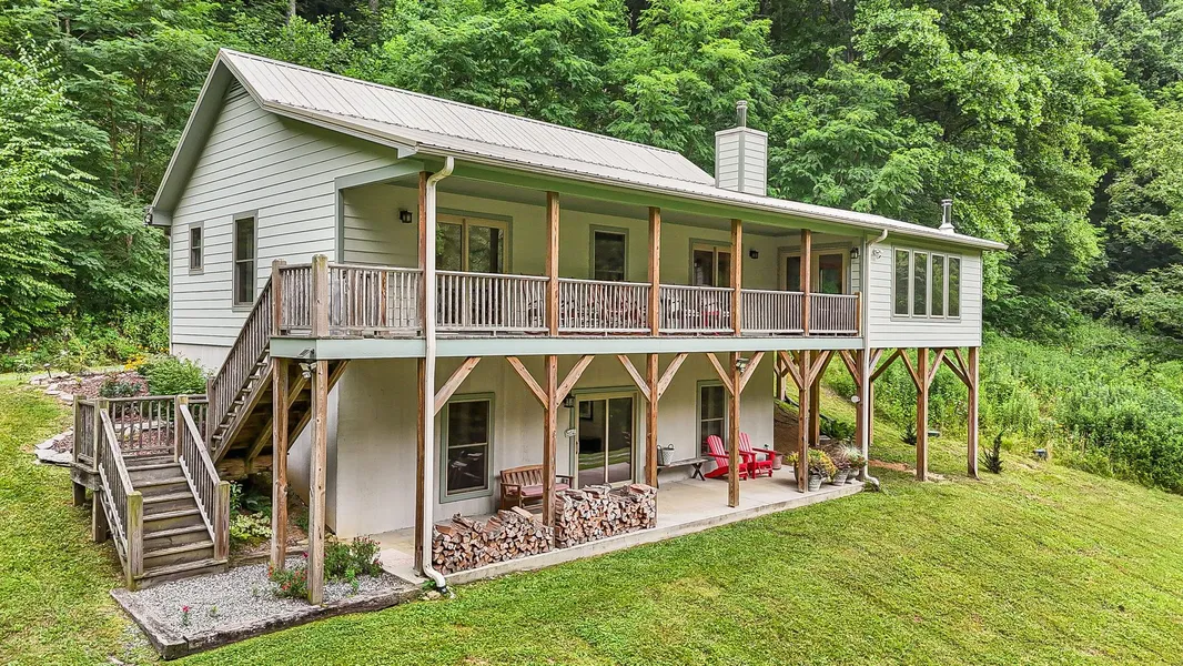 Retreat to the mountains! Apple Cabin sits perched above the bold Friezeland creek for an incredible year-round view. 2 bedrooms, and 3 bathrooms with Master on the main floor. A sunroom was added in 2020 with radiant floor heat and a woodstove. Has served as a successful vacation rental- Apple Cabin on the Creek. Deck and covered porches. Finished basement with bonus room, bathroom, and access to covered patio. Includes large field at the driveway entrance. Artesian Well. Established and mature landscaping throughout. Easy access to National Forest, Max Patch, downtown Hot Springs, Asheville, and Waynesville. 40 minutes to Asheville!