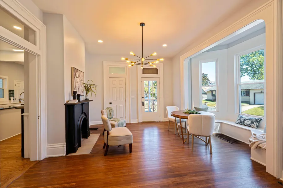 Walk inside and feel right at home. This house has been fully rebuilt from top to bottom with new wiring, new plumbing, and many updates that make it easy to live in and enjoy. Start your morning with a cup of coffee in the bright family room. At night, relax in one of the two large primary suites that give you plenty of space and comfort. The kitchen has a big granite island, white cabinets, and stainless steel appliances that make cooking and gathering fun and simple. The dining room and front parlor are great places to sit, talk, and spend time with people you care about. Upstairs, there is a second living area that can be used as a TV room, playroom, or home office. The hardwood floors, tall ceilings, and pocket doors help the home keep its classic look and feel. Outside, the two-car garage has extra space above it that could be used for storage, a hobby room, or a small studio. This home mixes old charm with modern updates and is ready for its next owner. Come see it today.