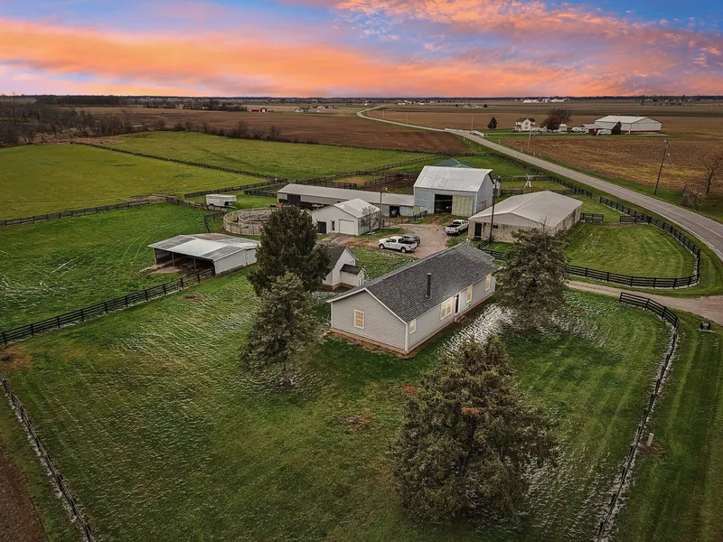 Equine training and Rehab facility! 30 acres, 22 stalls, 10 paddocks and an indoor 18 ft. deep training/rehab pool. Also includes Eurociser and walker. 3 bedroom 2 bath home with over 1,600 sq. ft. of living space. Spacious kitchen w updated cabinets, counters and flooring. Open living room equipped w wood burning fire place. Entry level mudroom and laundry. Spacious owners suite w full bath, walk in closet, double vanity and jacuzzi tub. Newer roof, water softener and HVAC. Facility could easily be set up for standardbred's. Three barns and indoor horse pool. Easy access to SR 62, SR 56 and I-71. Several options for this property for business or pleasure! Updated photos will be coming soon.