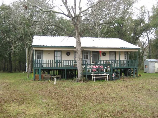 HOME ON 14.54 ACRES - THIS IS COUNTRY LIVING! Spacious 3 br., 2 ba. home is a split plan with an open living / dining area. The kitchen is roomy and has lots of cabinet space. Outdoors, there is an artesian well, pretty, stocked pond, and a guest house! The property is wooded with lots of deer, a plum thicket, pear, fig and native pecan trees.