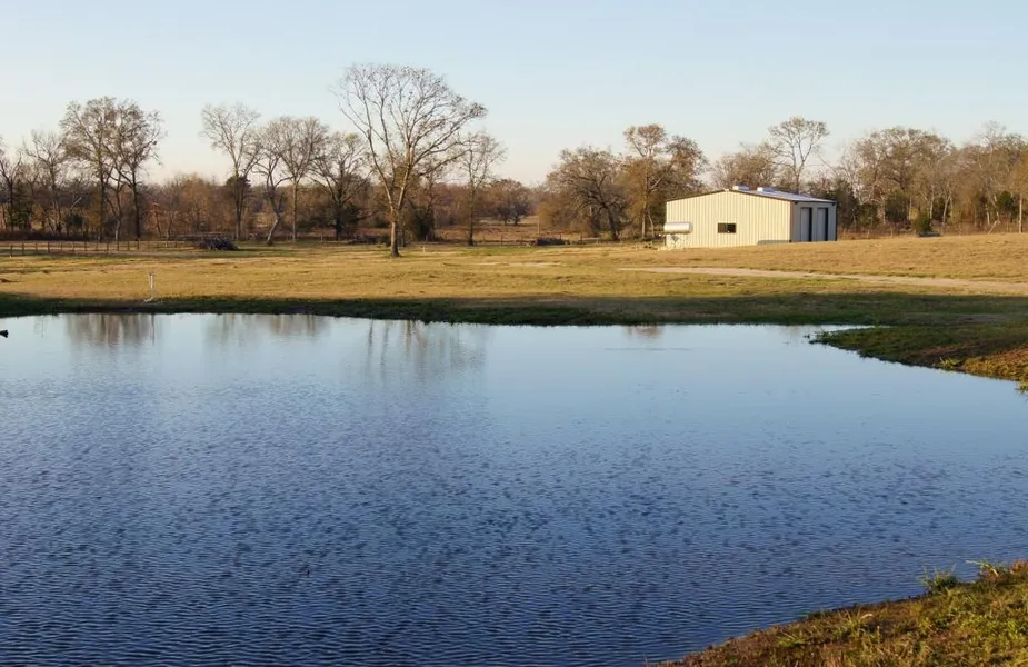 Madison County - Fantastic tract of land ready for the Weekender or Full-Time country living! 2-Story Barndominium with custom kitchen: Granite counters, Copper sink, Custom cabinetry; open living room and loft upstairs. Land is 98% open with pond, creek and excellent fencing. Water well and septic tank installed & operating. Asking $275,000