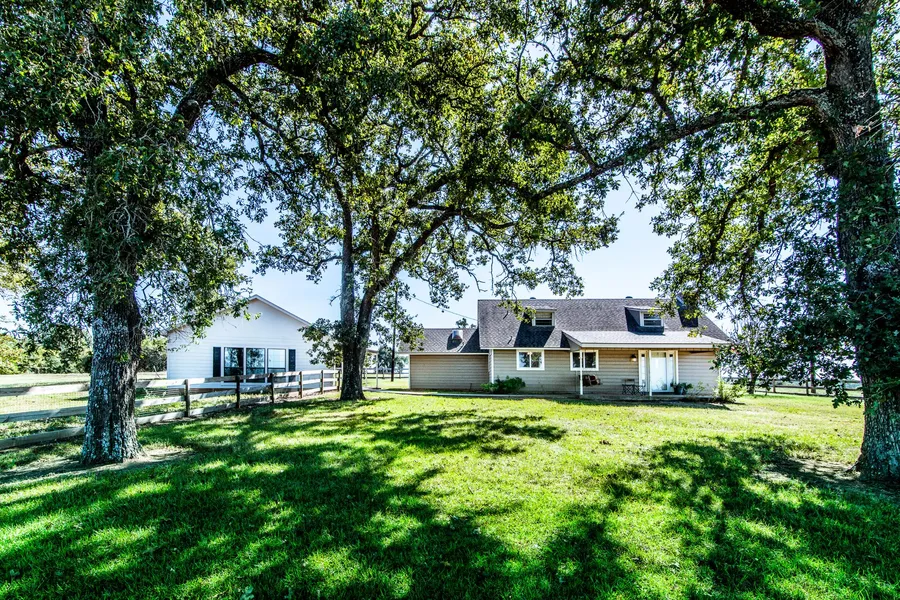 Appealing country ranch with original 3/2 home PLUS separate 2/1 cottage both nestled in fenced shady yard on higher elevation near middle of 111.5 cattle ranch. Apx. one acre stocked lake, 2,400 sq.ft. metal barn/concrete floor with 2 tall roll up doors on either end, an older barn/loafing shed and well house. Entire property is fenced with cross fences for 5 acre hay meadow and around houses. Newer guest cottage great for overflow guests, office, or studio has tall ceilings, large windows, beautiful bath, laminate flooring, entry space with stain glass window accent, large covered front porch and concrete walkway to main house. Enjoy lake and land views from swing on covered front porch of main house. Desirable almost square property shape with apx. 2,100 ' on all 4 sides including frontage on paved farm to market road. Country living within a half hour of Bryan/College Station and bet...