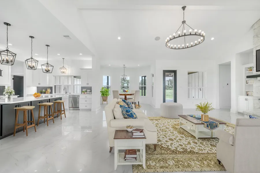 This beautiful new build home sits on 10 acres and is a must-see! The open concept and incredible design bring you a split floor plan that includes 4 bedrooms, 3 bathrooms, 2 half bathrooms, and over 3,500 square feet. The stunning kitchen has granite countertops, stainless steel appliances, an island, custom cabinets with built-ins, and a large pantry. The kitchen opens up to the dining area and living room which has vaulted ceilings and a fireplace. The large master suite provides the closet of your dreams, a soaking tub, and a separate shower. Upstairs you will find a game room and a half bathroom perfect for entertaining family and friends. The home also includes a covered back porch, an oversized 4-car garage, and 3 zone HVAC system. Don't miss out on this custom-built home, call The Wells Team to schedule your showing!