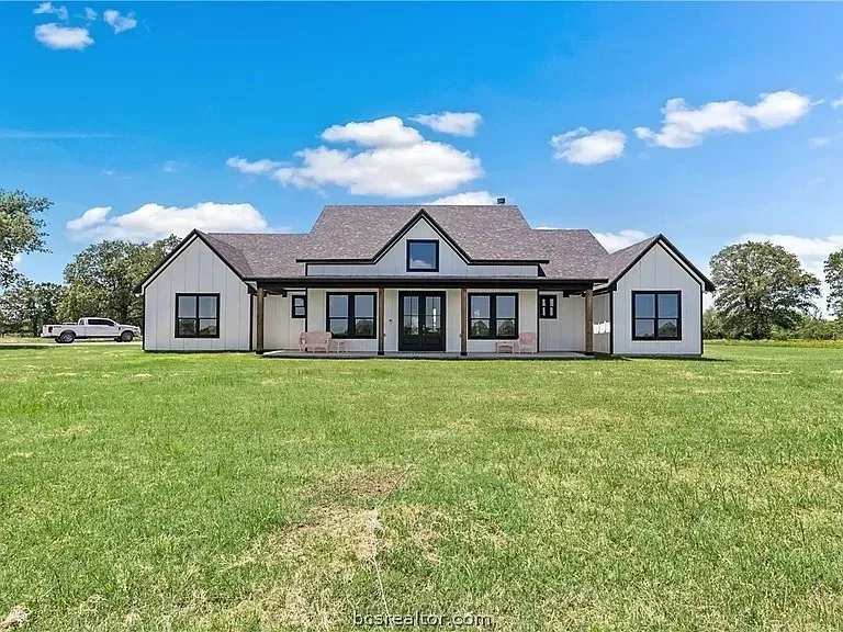NEW PRICE ALERT! Welcome Home to this Beautiful 4 Bed- 3.5 Bath- 3 Car Garage Modern Farmhouse on 10 Ag-Exempt Acres in Madisonville ISD. Located just minutes to Bryan-College Station (Texas A&M University) and major highway access to I-45, this home offers Country Living with close proximity to City Amenities. Come explore the beautiful features this home has to offer with plenty of room to add additional outbuildings, swimming pool, Livestock and whatever else your lifestyle needs. Enjoy the Sunrise & Sunsets on the large inviting Front Porch or Oversized outdoor living on the Back Patio. This Custom Built home boasts a large open concept Living, Dining & Chefs Kitchen (don't miss those Luxury Brand Appliances); Separate Office; Full Size Laundry with Utility Sink; Spacious Primary Bedroom with Ensuite Bath features: Separate Vanities, Freestanding Soaker Tub, Separate Shower and Walk-In Closet. Split plan secondary bedrooms have 1 Jack-n-Jill Bath and 1 separate full bath access.