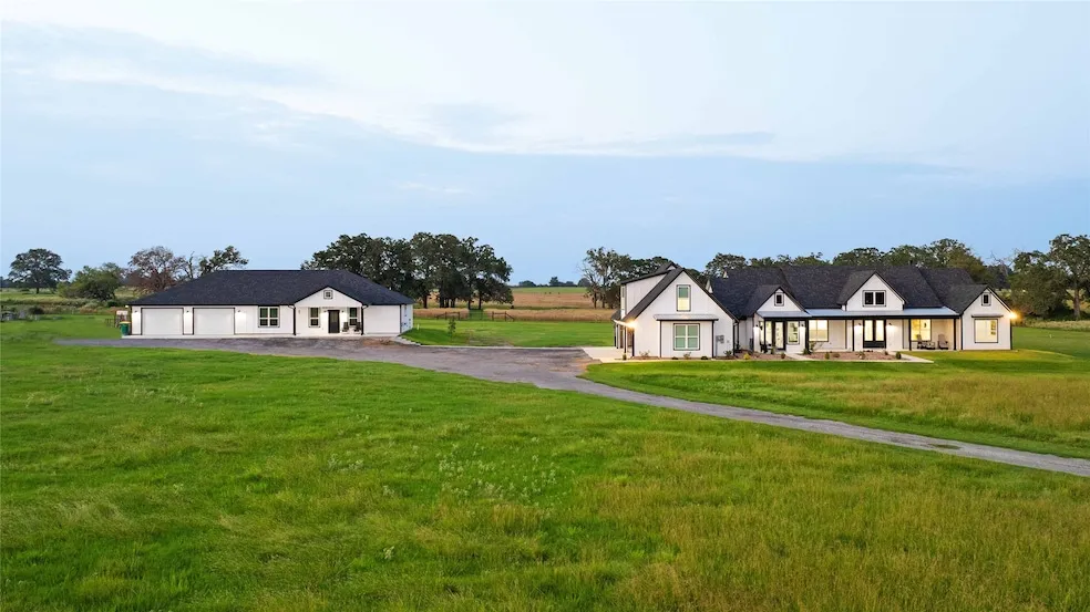NEW PRICE- Modern Farmhouse on 20 Acre Ag-Exempt parcel with Barndominium-Guest House or Rental. Located minutes to Major Highways between Bryan-College Station & Houston. Come enjoy the Country life with all the modern amenities. Primary residence boasts 3,770 s. f. with 4 Bedrooms, 3 Full- 2 Half Baths, Office; Open Living, Dining & Chefs Kitchen with Z-Line Stainless Appliances; 2nd Fl has 2 Flex Spaces & half bath; Oversized 4-Car Garage; Large Covered Back Patio with Full Outdoor Kitchen that flows out to the Beach Entry Pool overlooking the Gorgeous back pasture & Mosquito Sprayer. Barndominium-Guest Suite offers: 1,690 s. f; 2 Bedrooms, 1 Bath, Living, Full Kitchen with Breakfast Bar, Game-Theater area; Oversized Temp. Controlled 2 car garage, Workshop area & Covered Patio. COMING SOON-10 ACRE LAKE INSTALL *Seller will consider Subdividing the 20 acre parcel to a smaller Minimum 6...
